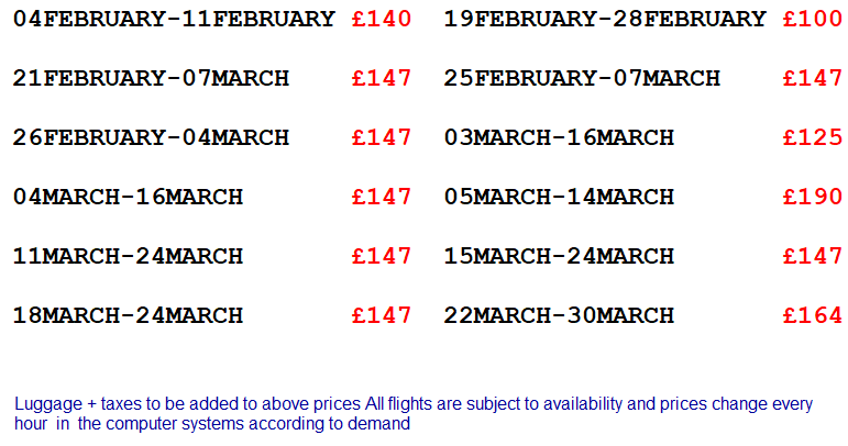 FEBRUARY-MARCH FLIGHT DEALS